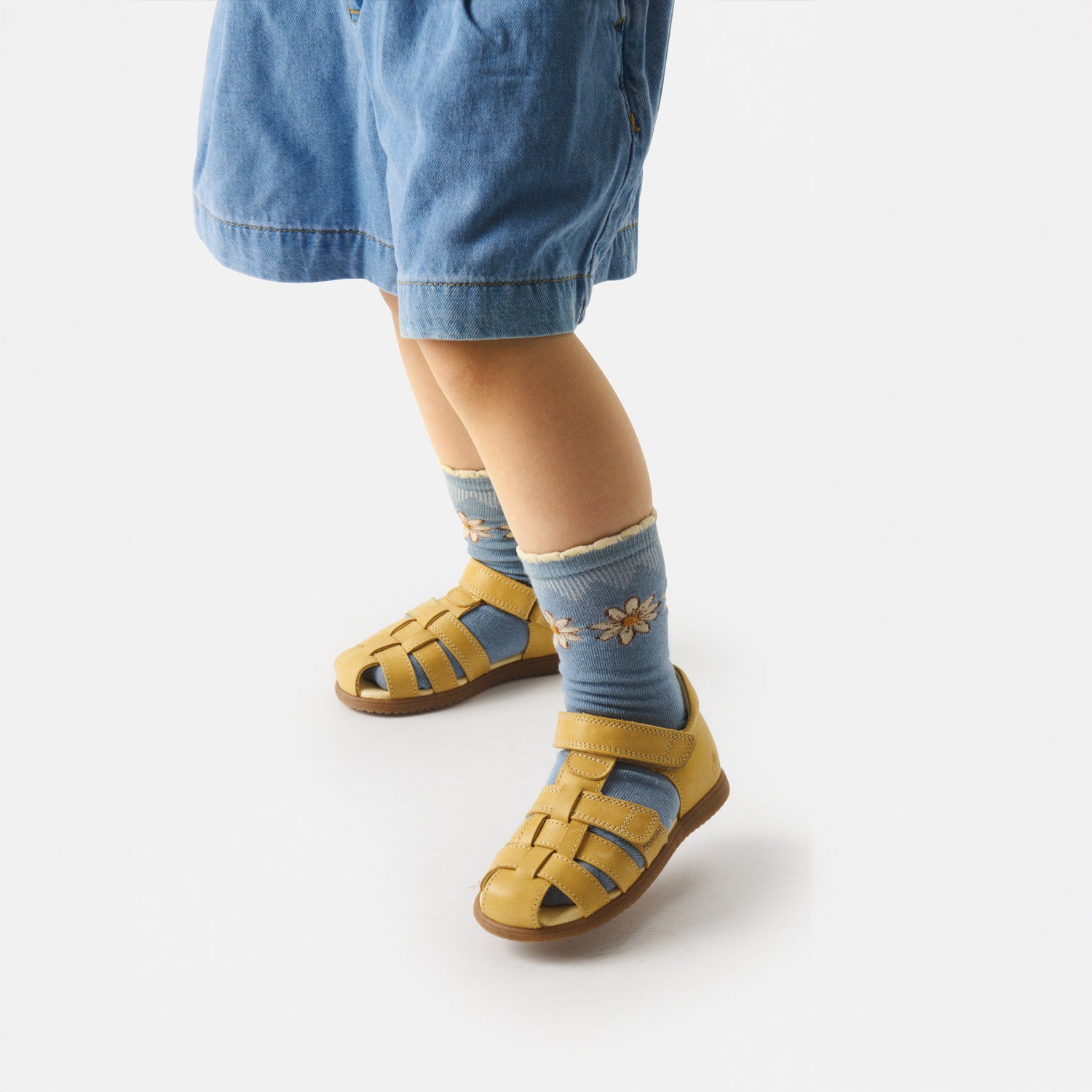 The sandal has a closed toe to protect little toes. At the same time, the heel counter is firm and stable, providing the necessary support for the foot and contributing to a healthy, stable gait.